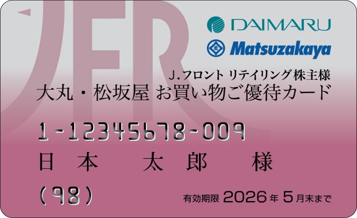 毎年2月末日現在100株以上ご所有の株主様に対し、翌年5月31日まで約1年間ご利用いただける『J.フロントリテイリング株主様 大丸・松坂屋お買い物ご優待カード』を5月中旬に発行いたします。